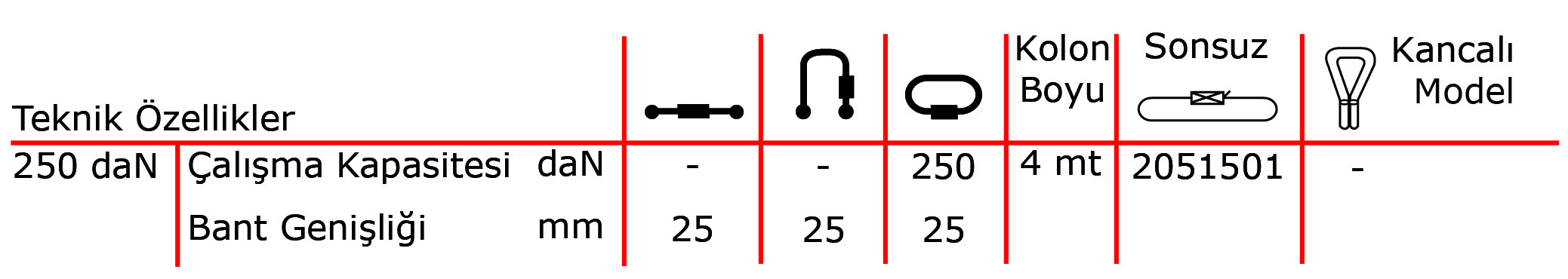 - Bant (kolon) genişliği 25mm ve 50mm olarak üretilmektedir.
